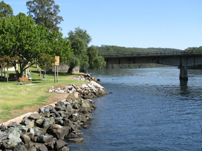 We haven't had much rain in NSW for a long time so the river was very low and in the distance, we were eyeing off a bushfire in the direction we were going. Ian crossing the bridge over the Abercrombie, well what's left of it anyway.